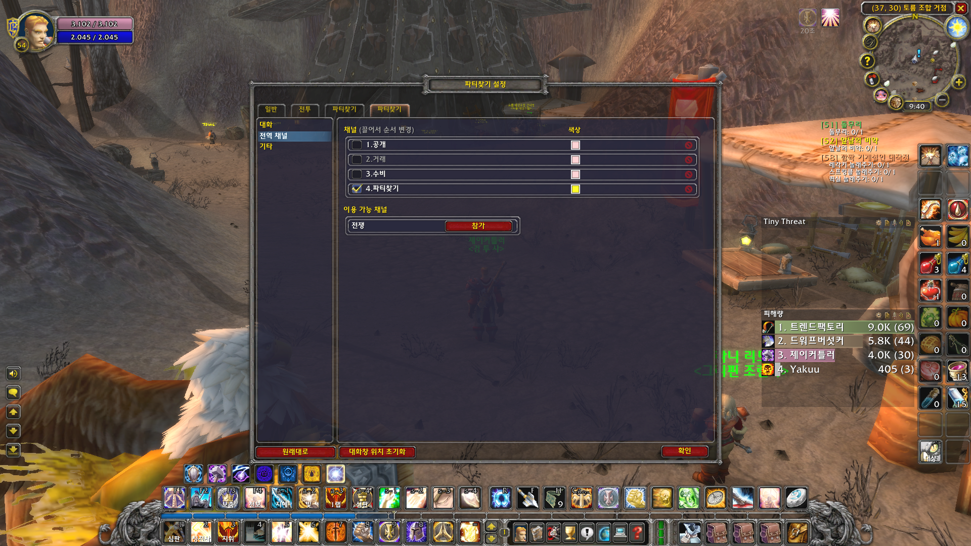 파티찾기 채널을 만드는 방법은 간단합니다. 와우 기본 대화창에서도 설정이 가능합니다. 방법은 아래와 같습니다.